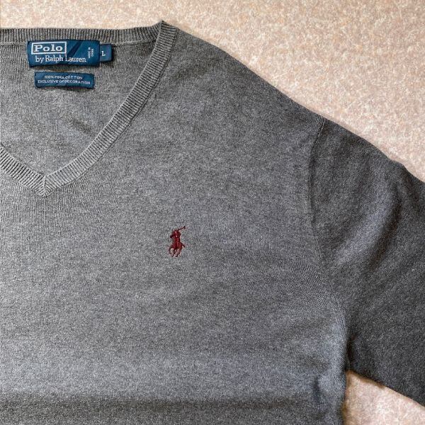 「Polo RALPH LAUREN(ポロ ラルフローレン)」ピマコットン ポニー刺繍 Vネック ライトグレー ニット [2011029]