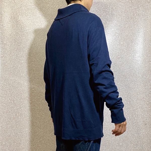 「Tommy Hilfiger(トミーヒルフィガー)」ワンポイント XLサイズ コットンモダール ネイビー ショールカラー ハイゲージ ニット [2011010]