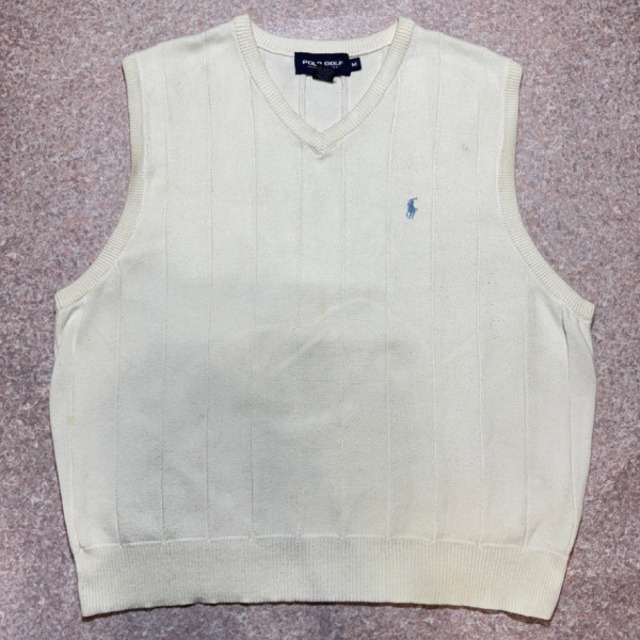 「Polo by Ralph Lauren (ポロラルフローレン)」90s 00s 10s Mサイズ コットン オフホワイト ポニー刺繍 ローゲージ ニット ベスト [2516055]