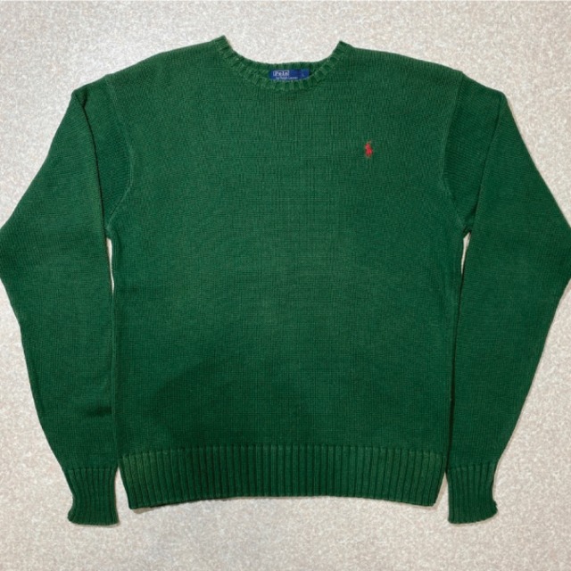 「Polo RALPH LAUREN(ポロ ラルフローレン)」クルーネック グリーン 90s ポニー刺繍 コットン ニット [2111004]